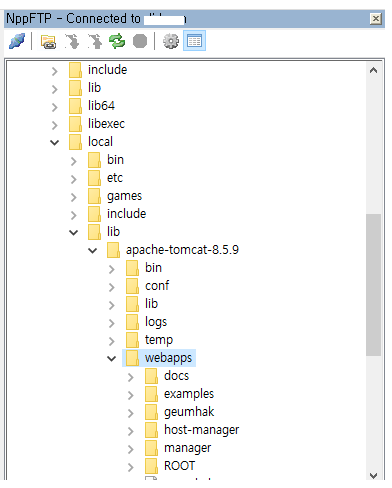 나는/usr/local/lib/apache-tomcat-8.5.9/webapps 이다.