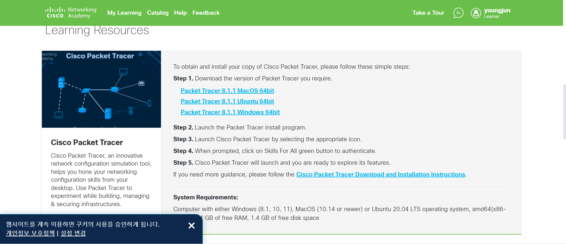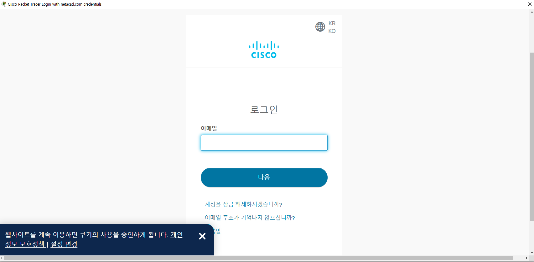 다만 패킷트레이서는 회원가입이 필수다. (꽤나 번거롭다. 사실.. 나는 예전에 가입해 두었다.. 그럼 먼저 지나가겠다... )