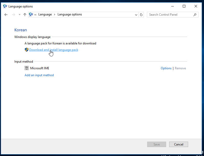 시작 > Control Panel > Add a language