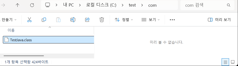 즉, pacage com; 이라는 내용을 TestJava.java에 적겠다는 내용이다.