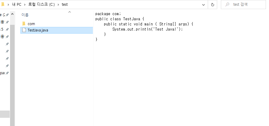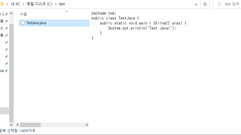 C드라이브에 test 폴더를 만들고 거기에다 TestJava.java파일을 작성하는것이 목표다.