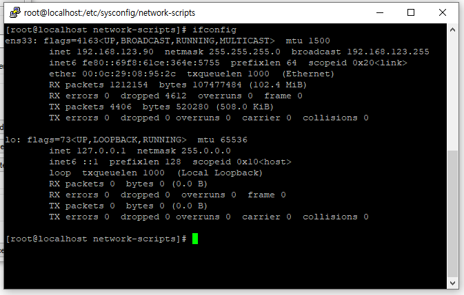 ifconfig로 변경된정보를 확인해본다.