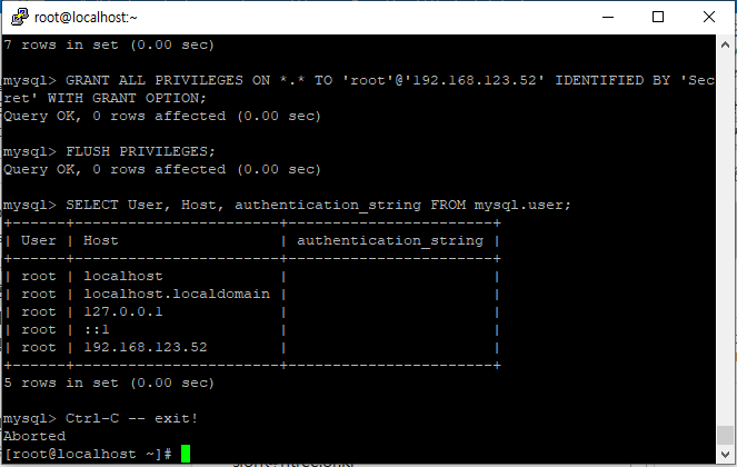7-4. MySQL 원격 접근 설정(mysql server 자체에서 설정)