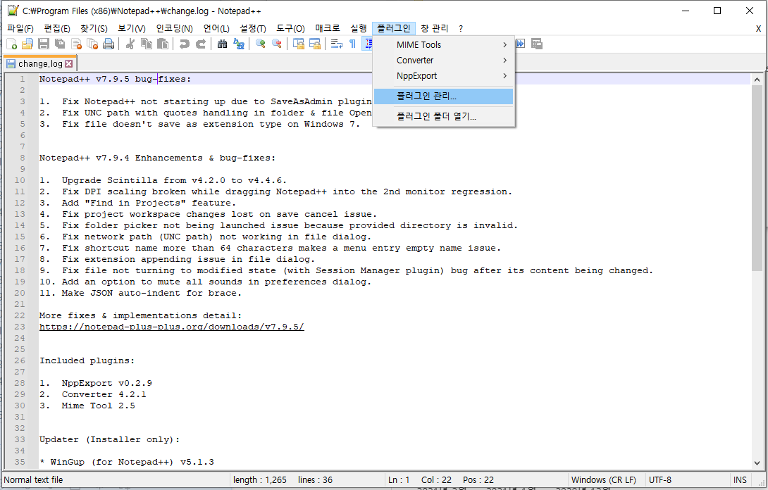 다운로드 링크 : https://notepad-plus-plus.org/downloads/